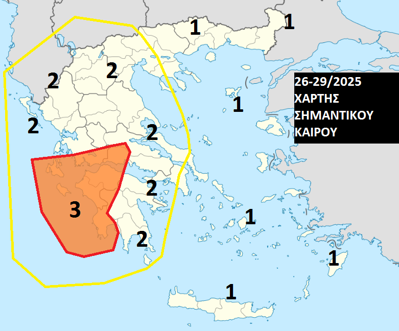 Εκτίμηση πρώτης διαταραχής/κακοκαιρίας 27-29/9/2025. Περιοχές αυξημένου κινδύνου!