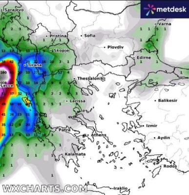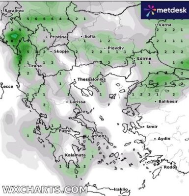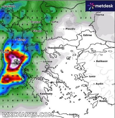 Στη συνέχεια προβλέπονται τοπικές νεφώσεις κατά περιόδους στο Ιόνιο τα ηπειρωτικά και από το μεσημέρι και μετά στο κεντρικό και ανατολικό Αιγαίο και θα σημειώνονται αρχικά βροχές και σποραδικές καταιγίδες στα νησιά του Ιονίου την Ήπειρο και τη δυτική Μακεδονία και λίγες ψιχάλες στη Θεσσαλία και την κεντρική Μακεδονία ενώ όσο πάμε προς το μεσημέρι τα φαινόμενα στα δυτικά θα ενταθούν και θα επεκταθούν υπο την μορφή καταιγίδων και στην Ήπειρο τη δυτική Στερεά τη δυτική και νότια Πελοπόννησο και πρόσκαιρα βροχές κατά περιόδους αξιόλογες στο μεγαλύτερο μέρος της δυτικής και βόρειας Θεσσαλίας της Μακεδονίας και αργά το βράδυ της Θράκης του βόρειο ανατολικού Αιγαίου και των Σποράδων. Επισημαίνεται ότι τα φαινόμενα πιθανώς να είναι ισχυρά σε τμήματα των νομών Ιωαννίνων Άρτας Θεσπρωτίας Πρέβεζας δυτικά τμήματα της Θεσσαλίας Αιτωλοακαρνανία Φωκίδα Ευρυτανία νήσοι κεντρικού και βόρειου Ιονίου και Πιερίας.