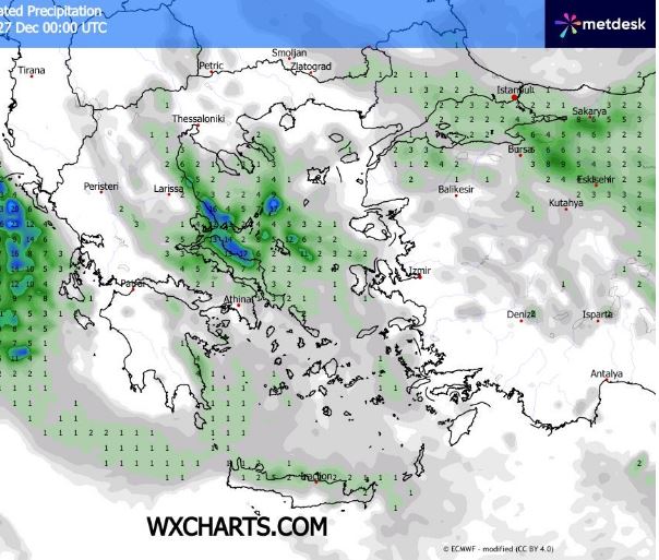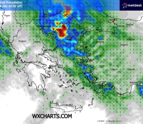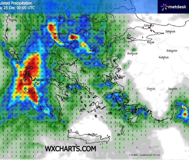 Πρόγνωση Ελλάδας και ξεχωριστά Θεσσαλίας και Λάρισας για 24-26/12/2025