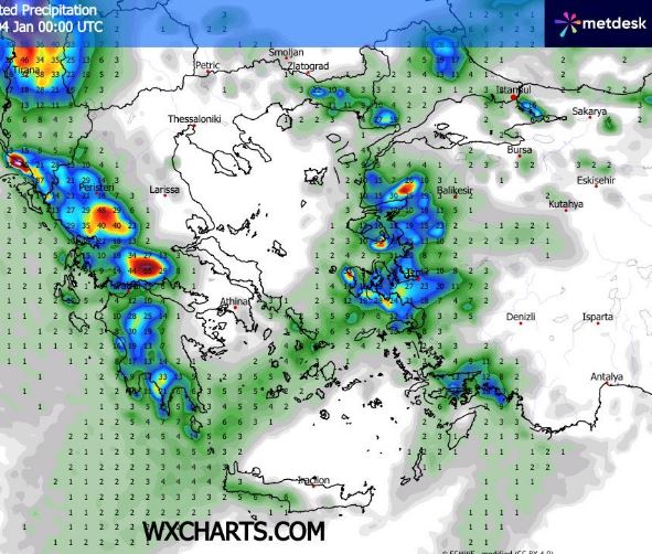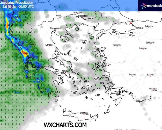 Πρόγνωση Ελλάδας και ξεχωριστά Θεσσαλίας και Λάρισας για 2-4/1/2026.