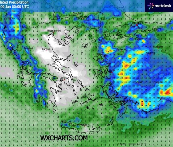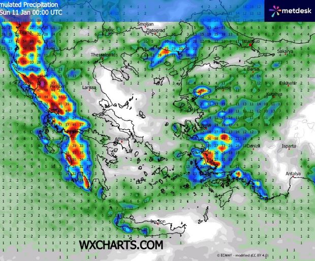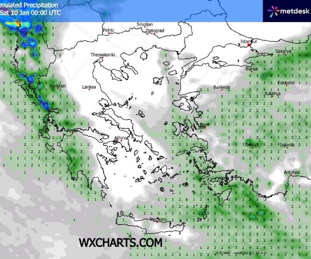 Προβλέπεται κακοκαιρία με αρκετές βροχές και καταιγίδες στα νησιά του Ιονίου τη δυτική Ελλάδα την ανατολική Μακεδονία τη Θράκη τις Κυκλάδες την Κρήτη τα Δωδεκάνησα και τα νησιά του ανατολικού Αιγαίου ενώ στις προαναφερθησες θαλάσσιες περιοχές θα εκδηλώνονται και παροδικές καταιγίδες. Στην υπόλοιπη χώρα άστατος καιρός με λίγες ασθενείς βροχές κατά περιόδους. Αντίθετα στις περιοχές των Σποράδων της Εύβοιας της Αττικής και της Αργολίδας δεν θα βρέξει σχεδόν καθόλου. Χιονοπτώσεις θα σημειωθούν κατά τόπους ισχυρές στην Ήπειρο και τη δυτική Θεσσαλία πάνω από τα 600 με 800 m κατά μέσο όρο καθώς και σε τμήματα της Μακεδονίας και της Θράκης ενώ πρόσκαιρα για λίγο τις πρώτες μεσημεριανές ώρες στην περιοχή του Κιλκίς δεν αποκλείεται κάποιες ασθενείς χιονοπτώσεις να πέσουν και σε χαμηλότερα υψόμετρα με γρήγορη όμως βελτίωση. Αργά το απόγευμα και νωρίς το βράδυ τα φαινόμενα θα έχουν σταματήσει στις περισσότερες περιοχές της ηπειρωτικής χώρας και θα επικεντρώνονται κάποιες μπόρες και λίγες καταιγίδες στα νησιά των ανατολικού Αιγαίου τις Κυκλάδες στην Κρήτη και κυρίως τα Δωδεκάνησα.