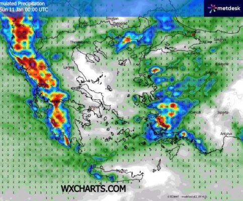 Στην δυτική Ελλάδα προβλέπονται νεφώσεις οι οποίες γρήγορα θα αυξηθούν και θα αρχίσουν να σημειώνονται βροχές και καταιγίδες κατά τόπους ισχυρές κυρίως στο εσωτερικό της Ηπείρου της δυτικής Στερεάς και της δυτικής και νότιας Πελοποννήσου ενώ όσο πάμε προς το μεσημέρι και μετά τοπικά φαινόμενα θα αρχίσουν να εκδηλώνονται στην Μακεδονία στην Θράκη που πιθανώς και εκεί να είναι αξιόλογα και τα νησιά του ανατολικού Αιγαίου. Έως αργά το βράδυ λίγα ασθενή φαινόμενα δεν αποκλείεται να σημειωθούν και στις υπόλοιπες περιοχές εκτός από Σποράδες Εύβοια ανατολική Κρήτη ενώ ήδη από τις πρώτες μεσημεριανές ώρες τα φαινόμενα στο ανατολικό κομμάτι της ηπειρωτικής χώρος και τη βόρεια Ελλάδα θα έχουν εξασθενήσει και σχεδόν θα έχουν σταματήσει. Χιονοπτώσεις κατά τόπους ισχυρές αρχικά σε μεγάλα υψόμετρα αλλά από τις πρώτες πρωινές ώρες και μετά θα αρχίσουν να κατεβαίνουν σε υψόμετρα κοντά στα 1.000 m στη δυτική κεντρική και βόρεια χώρα και προς το βράδυ σε τμήματα της Ηπείρου και της δυτικής και κεντρικής Μακεδονίας πάνω από τα 500 με 600 μέτρα στα υπόλοιπα τμήματα της Πίνδου πάνω από τα 900 με 1.300.
