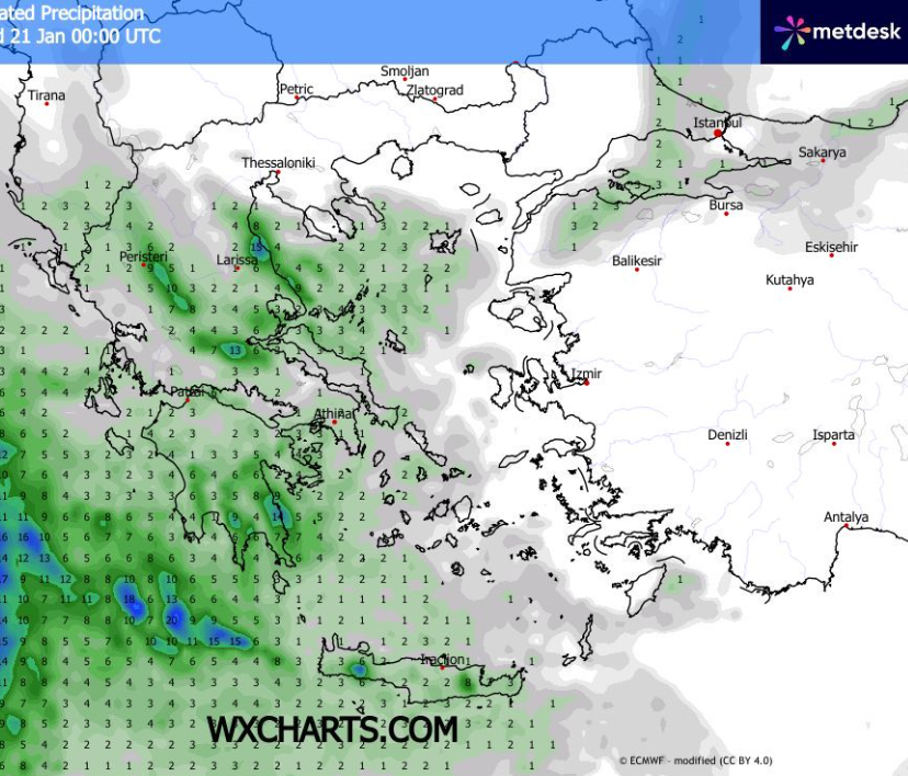 Προβλέπεται στη Θράκη το ανατολικό Αιγαίο την Αττική την Εύβοια τις Κυκλάδες στην Κρήτη τα Δωδεκάνησα την Πελοπόννησο και τη δυτική Ελλάδα άστατος καιρό με βροχές και καταιγίδες ενώ πρόσκαιρα θα σημειωθούν κάποια φαινόμενα και στην Ήπειρο τη Θεσσαλία την υπόλοιπη Στερεά και τη δυτική Μακεδονία υπό τη μορφή βροχοπτώσεων καταιγίδων στα θαλάσσια και λίγων χιονοπτώσεων στη δυτική Μακεδονία και τα ορείνα της δυτικής και βόρειας Θεσσαλίας με σταδιακή όμως βελτίωση του καιρού στο εσωτερικό της ηπειρωτικής χώρας και έως το απόγευμα και το βράδυ τοπικά φαινόμενα θα υπάρχουν στη δυτική Ελλάδα τα νησιά του Ιονίου τα νησιά του ανατολικού Αιγαίου και τα Δωδεκάνησα όπου θα εκδηλώνονται και λίγες ασθενείς καταιγίδες ενώ στα υπόλοιπα ηπειρωτικά τμήματα θα αναπτυχθούν και πυκνές ομίχλες. Επισημαίνεται ότι τα φαινόμενα θα είναι έντονα στα νησιά του ανατολικού Αιγαίου από την Σαμοθράκη έως και τη Ρόδο όπου τοπικά θα σημειωθούν και πάνω από 30/50 χιλιοστά βροχής και ενδεχομένως και σε κάποια νησιά του Ιονίου όπως η Κεφαλονιά η Λευκάδα και τα παραθαλάσσια των νομών Ηλείας και Μεσσηνίας.