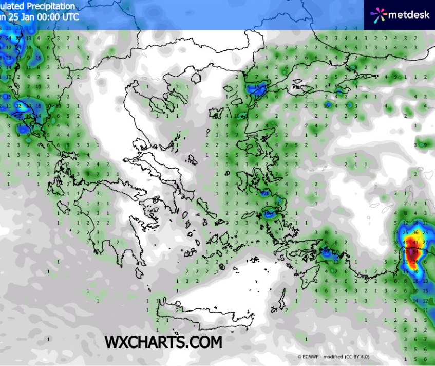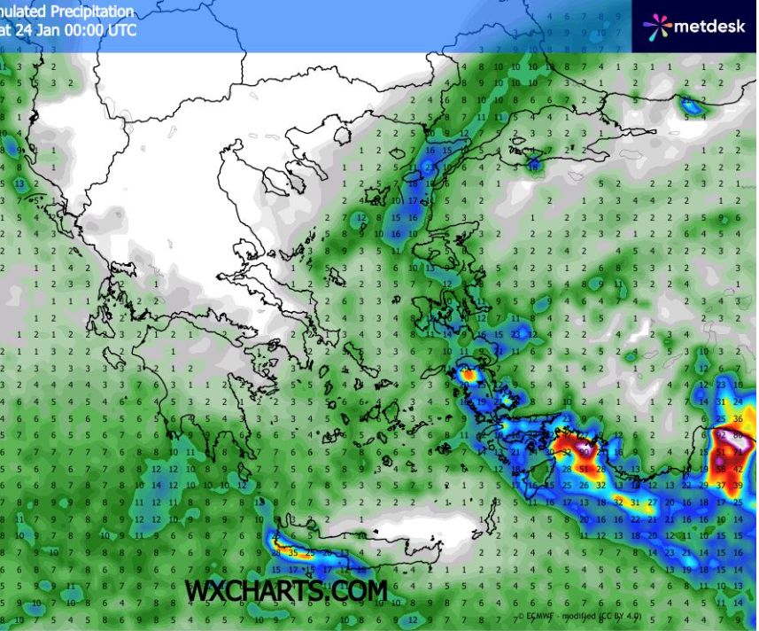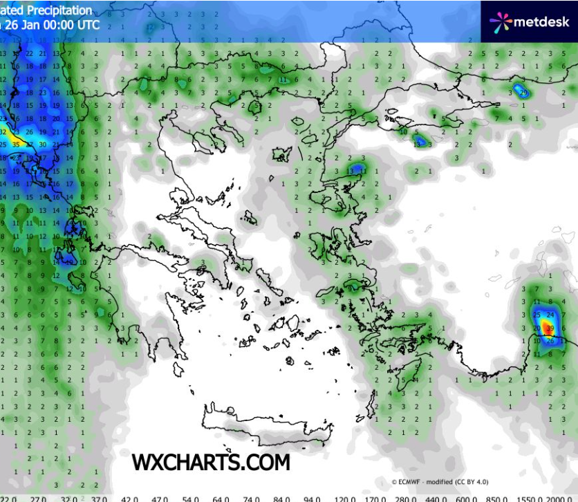 Πρόγνωση Ελλάδας και ξεχωριστά Θεσσαλίας και Λάρισας για 23-25/1/2026 +ΧΑΡΤΕΣ ΒΡΟΧΗΣ