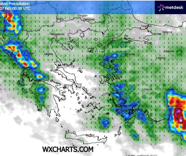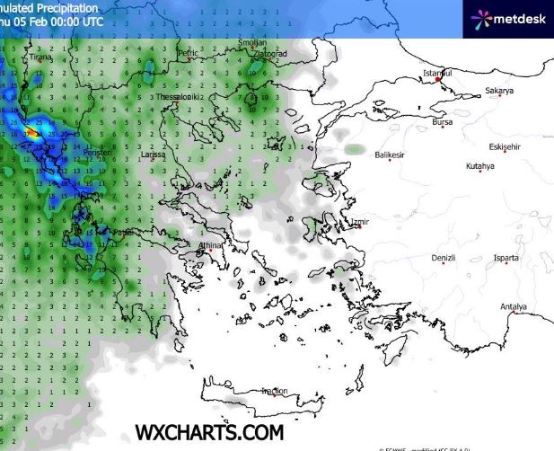 Προβλέπεται σχετική κακοκαιρία στις περισσότερες περιοχές της χώρας με βροχές στα πεδινά και σποραδικές καταιγίδες κυρίως στα θαλάσσια και παραθαλάσσια τμήματα ενώ από αργά το απόγευμα θα αρχίσει να βελτιώνεται ο καιρός στα ηπειρωτικά και το Ιόνιο και έως αργά το βράδυ τα φαινόμενα θα επιμείνουν στην ανατολική Μακεδονία τη Θράκη υπό την μορφή βροχής και καταιγίδων στα νησιά του ανατολικού Αιγαίου τις Κυκλάδες και τμήματα των Δωδεκανήσων και της Κρήτης ενώ λίγες διάσπαρτες βροχές δεν αποκλείονται στη δυτική Ελλάδα και τα νησιά του Ιονίου. Επισημαίνεται ότι τα φαινόμενα θα είναι κατά τόπους ισχυρά και χρήζουν προσοχής σε τμήματα των νομών Δράμας Καβάλας Ξανθής Ροδόπης Έβρου και σε νησιά όπως Σαμοθράκη Λήμνος Λέσβος Χίος Σάμος Ικαρία Ρόδος καθώς και πεδινά τμήματα του νομού Αιτωλοακαρνανίας Αχαΐας Ηλείας Μεσσηνίας και Λακωνίας όπου κατά τόπους θα σημειωθούν και πάνω από 30 με 50 mm. Ασθενείς χιονοπτώσεις στα σημειώνονται κατά περιόδους στα ηπειρωτικά πάνω από τα 1.300 με 1.600 m κατά μέσο όρο. Περιορισμένη ορατότητα και πυκνές ομίχλες το πρωί και το βράδυ στα ηπειρωτικά