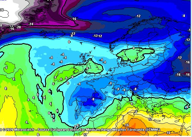 Τέλος για την περίοδο 22 έως 26 Φεβρουαρίου ο καιρός θα χαλάσει και πάλι από τα δυτικά προς τα ανατολικά με ένα ή και δύο βαρομετρικά χαμηλά αρκετά φαινόμενα και χιονοπτώσεις στα ορεινά της ηπειρωτικής χώρας Ενώ υπάρχει και μια πιθανότητα 30 με 40% κατέβουν και σε χαμηλά υψόμετρα της Ηπείρου της Μακεδονίας και της Θράκης με βελτίωση του καιρού στο τέλος της περιόδου. Θερμοκρασία αρχικά 12 με 16 βαθμούς κελσίου από βορρά προς νότο με σημαντική πτώση στα βορειότερα τμήματα (5-10οC) της χώρας στη συνέχεια και ελαφρύ παγετό για τμήματα της δυτικής κεντρικής και βόρειας τις πρωινές και βραδινές ώρες.