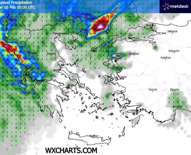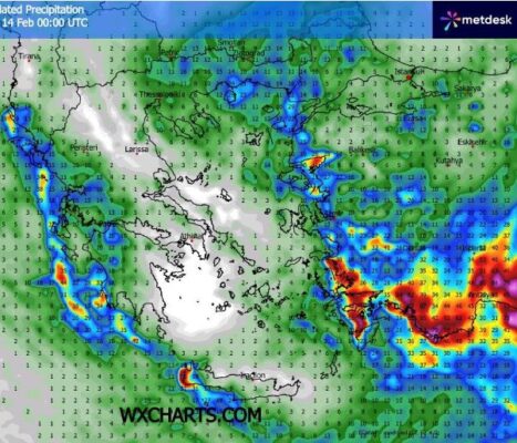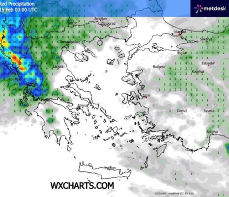 Προβλέπονται αρχικά τοπικές βροχές στο ανατολικό Αιγαίο και τα Δωδεκάνησα που σταδιακά θα σταματήσουν και ο καιρός θα βελτιωθεί και σε αυτές τις περιοχές πρόσκαιρα. Γρήγορα όμως πριν από το μεσημέρι στο Ιόνιο τα δυτικά και βόρεια ηπειρωτικά οι νεφώσεις θα αυξηθούν και θα σημειωθούν κάποιες βροχές διάσπαρτες που έως το βράδυ θα ενταθούν στα νησιά του Ιονίου και θα εκδηλωθούν και καταιγίδες. Λίγα ασθενή φαινόμενα έως αργά το βράδυ θα έχουν φτάσει να επηρεάζουν τη Μακεδονία τη Θράκη τη δυτική και βόρεια Θεσσαλία τη δυτική Πελοπόννησο και κυρίως τις περισσότερες περιοχές του Ιονίου την Ήπειρο και τη δυτική Στερεά. Χιονοπτώσεις αργά το βράδυ στην Ήπειρο πάνω από τα 1700 μέτρα υψόμετρο.