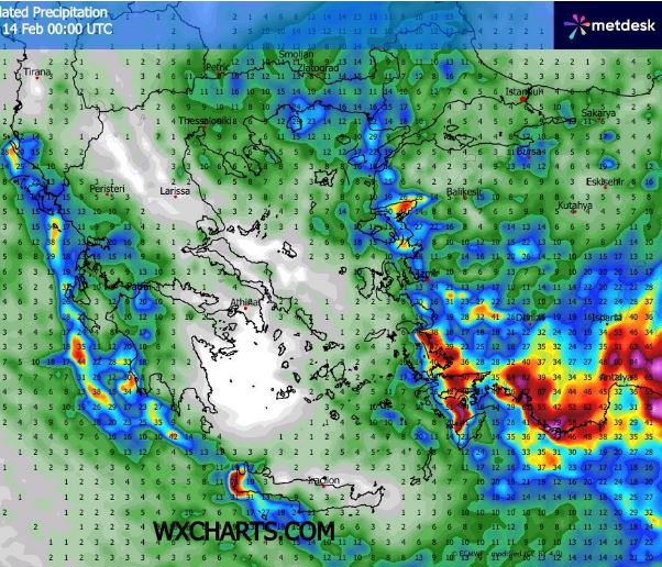 Προβλέπεται αρχικά κακοκαιρία σε όλη σχεδόν τη χώρα με τα εντονότερα φαινόμενα στα νησιά του Ιονίου τη δυτική χώρα την Κρήτη το ανατολικό και βόρειο Αιγαίο την ανατολική Μακεδονία και Θράκη και τα Δωδεκάνησα που θα εκδηλώνονται και καταιγίδες. Τα φαινόμενα σταδιακά από τις πρώτες απογευματινές ώρες θα αρχίσουν να σταματούν από τα βόρεια προς τα νότια και ως αργά το βράδυ θα έχουν παραμείνει στα Δωδεκάνησα και διάσπαρτα στη δυτική Ελλάδα την Κρήτη και το ανατολικό Αιγαίο ενώ στην υπόλοιπη χωράει ο καιρός θα βελτιωθεί σημαντικά. Χιονοπτώσεις στα ορεινά της ηπειρωτικής χώρας πάνω από τα 1200 με 1300 μέτρα κυρίως κυρίως έως το απόγευμα.