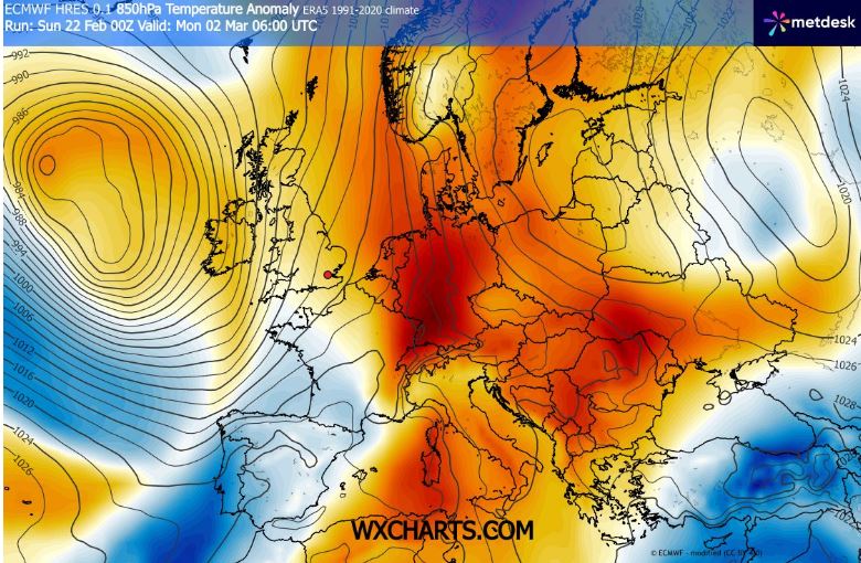 Τάση του καιρού για τις επόμενες 2 εβδομάδες σύμφωνα με τα προγνωστικά στοιχεία της 22 Φεβρουαρίου 2026.