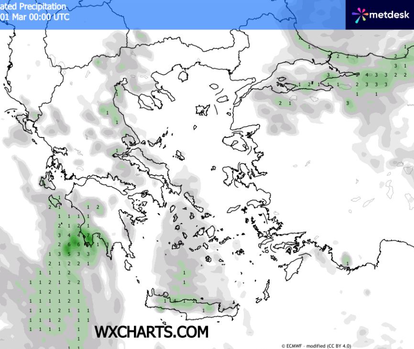 Πρόγνωση Ελλάδας και ξεχωριστά Θεσσαλίας και Λάρισας για 28-2/2-3/2026 +ΧΑΡΤΕΣ ΒΡΟΧΗΣ