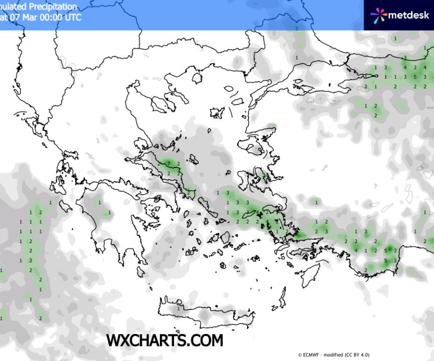 Πρόγνωση Ελλάδας και ξεχωριστά Θεσσαλίας και Λάρισας για 6-8/3/2026 +ΧΑΡΤΕΣ ΒΡΟΧΗΣ