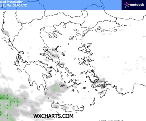 Θερμοκρασία από -2 έως 14/17 βαθμούς κελσίου στα ανατολικά και βόρεια ηπειρωτικά και το κεντρικό και βόρειο Αιγαίο και ως 17 με 20 βαθμούς κελσίου στη δυτική και νότια χώρα .