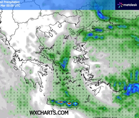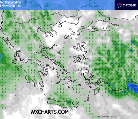 Πρόγνωση Ελλάδας και ξεχωριστά Θεσσαλίας και Λάρισας για 21-23/3/2026 +ΧΑΡΤΕΣ ΒΡΟΧΗΣ