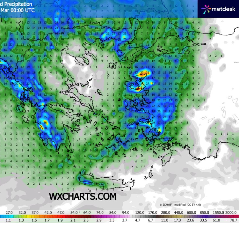 Προβλέπεται σταδιακή αλλαγή του καιρού πρώτα στα δυτικά με βροχές κατά περιόδους και πυκνές χιονοπτώσεις στα ορεινά της Ηπείρου της δυτικής Θεσσαλίας και της δυτικής Μακεδονίας πάνω από τα 900 με 1100 μέτρα κατά μέσο όρο. Από τις πρώτες πρωινές ώρες τα φαινόμενα θα επεκταθούν στη Θεσσαλία τη Μακεδονία τα νησιά του ανατολικού Αιγαίου τη Θράκη και έως και το μεσημέρι θα έχει επεκταθεί και στην Κρήτη και τα υπόλοιπα τμήματα της ηπειρωτικής χώρας. Κατά τις απογευματινές ώρες δέσμη βροχών θα συνεχίσει με έντονα φαινόμενα στη Θράκη το ανατολικό Αιγαίο και τμήματά των Δωδεκανήσων ενώ στα υπόλοιπα ηπειρωτικά θα υπάρξουν και μεγάλα ανοίγματα του καιρού ενώ στα δυτικά και το Ιόνιο θα συνεχίζονται κατά τόπους και κάποιες βροχές. Επισημαίνεται οτι τα φαινόμενα θα είναι κατά τόπους ισχυρά σε μεγάλο μέρος της Ηπείρου τις δυτικής Στερεάς Πελοποννήσου και αξιόλογα έως έντονα στη Θράκη και νησιά του ανατολικού Αιγαίου. Τις μεσημεριανές και απογευματινές ώρες δεν αποκλείονται σύντομες καταιγίδες να εκδηλωθούν στα ηπειρωτικά αλλά και νησιωτικά τμήματα. Επισημαίνεται ότι μέχρι αργά το βράδυ δεν θα επηρεαστούν σχεδόν καθόλου τμήματα της Χαλκιδικής των Σποράδων περιοχές της ανατολικής Κρήτης κάποια τμήματα των Δωδεκανήσων και της Εύβοιας.
