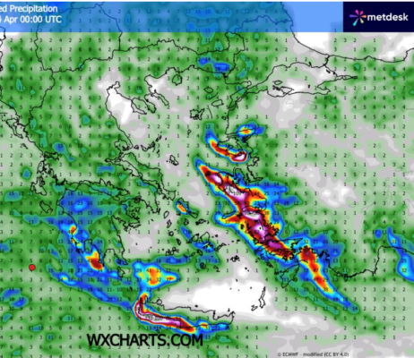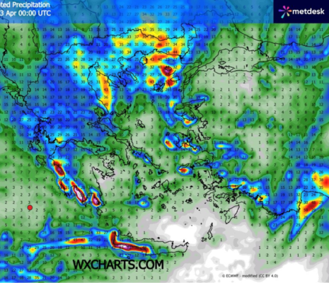 Πρόγνωση Ελλάδας και ξεχωριστά Θεσσαλίας και Λάρισας για 2-4/4/2026 +ΧΑΡΤΕΣ ΒΡΟΧΗΣ