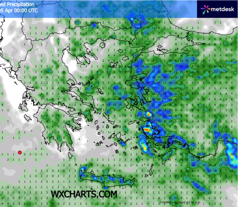 Πρόγνωση Ελλάδας και ξεχωριστά Θεσσαλίας και Λάρισας για 2-4/4/2026 +ΧΑΡΤΕΣ ΒΡΟΧΗΣ
