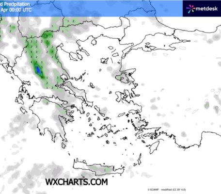 Θερμοκρασία, από 6 εως 19-22°C στα ανατολικά ηπειρωτικά και το Αιγαίο και ως 24-27°C στη δυτική Ελλάδα και την βόρεια Κρήτη .
