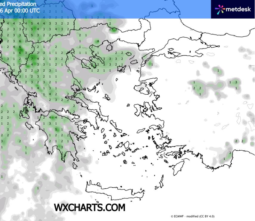 Προβλέπεται γενικά καλός καιρός σε όλη τη χώρα με αραιές νεφώσεις κατα περιόδους λίγο πιο πυκνές στην δυτική Ελλάδα και τις Κυκλάδες όπου δεν αποκλείονται λίγες ασθενείς βροχές άνευ σημασίας και τις μεσημεριανές ώρες σε τμήματα ορεινά της δυτικής Θεσσαλίας της Μακεδονίας και της Θράκης ενώ οσο πάμε προς το απόγευμα τα φαινόμενα θα είναι λίγο πιο αξιόλογα στην Ήπειρο τη Θεσσαλία τη Στερεά Ελλάδα τη δυτική και βόρεια Πελοπόννησο και τα νησιά του Ιονίου και αργά τη νύχτα της στη δυτική Μακεδονία και την Εύβοια.